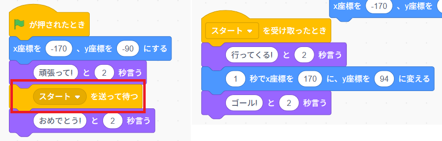 R「スタートを送ったら受け取った側の命令をして、戻っておめでとう。」