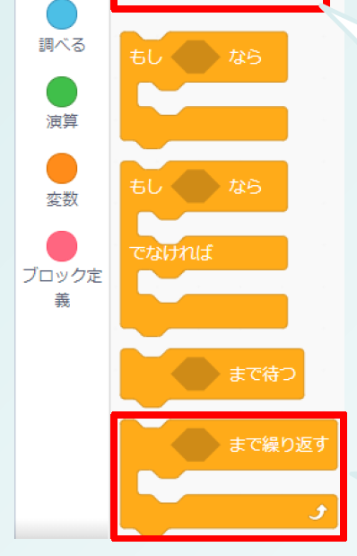 と聞くと「もし」ブロックをなくし、「もし」ブロック内に組み立てていた命令を繰り返し終了後に繋げました。