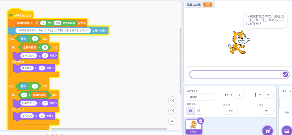 変数を使ってゲームの状態を管理したり、ランダムな動きを取り入れたりと、