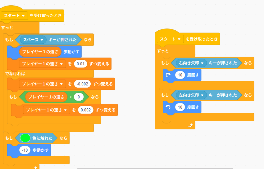 今回は「加速」の部分から作る、という形で考え方を整理しながら進めてもらいました。