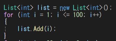 H「まず1から100を繰り返しでListに追加していく。」